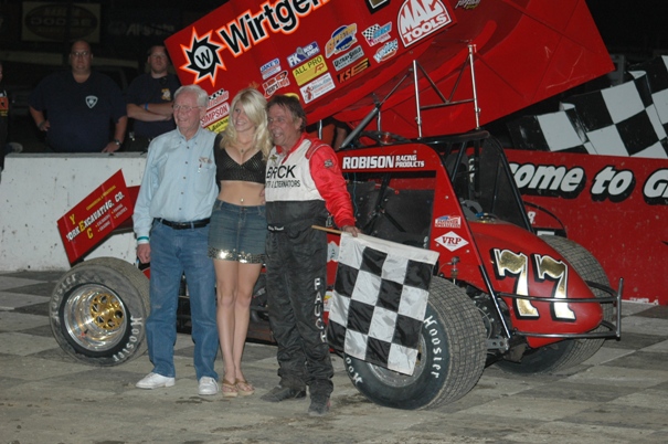 PHOTO 6 - 410 SPRINTS WINNER BILLY PAUCH W/CAR OWNER AL HAMILTON AND CHELSEA